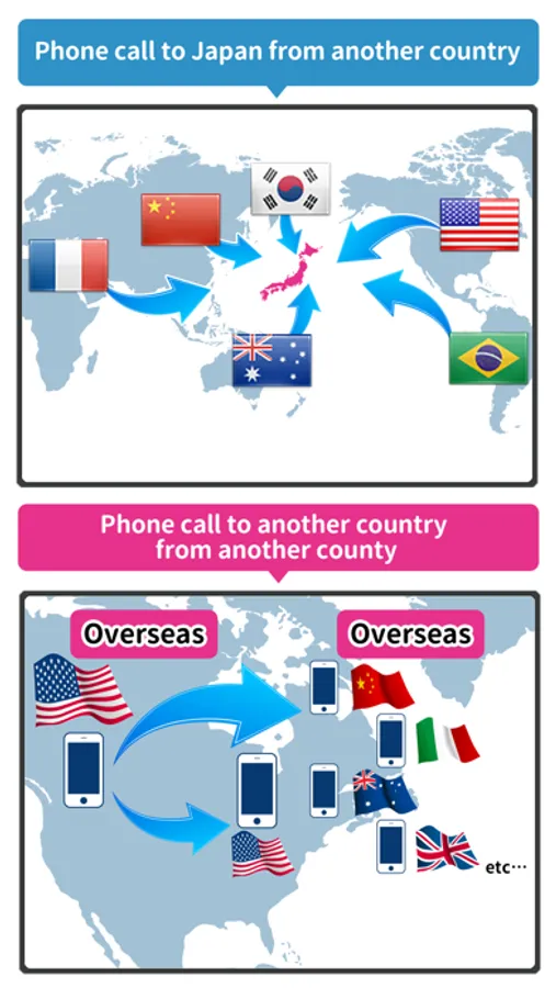 - Japan to overseas (international calls): for over 60 countries, 1 yen/3 seconds (calls to other countries are also affordable).