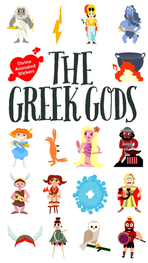 38 beautifully animated stickers of the 12 Greek Gods of Olympus, their favorite animals and items, hand-drawn in great detail with a sense of humor so that children and grownups will love them at first sight.
