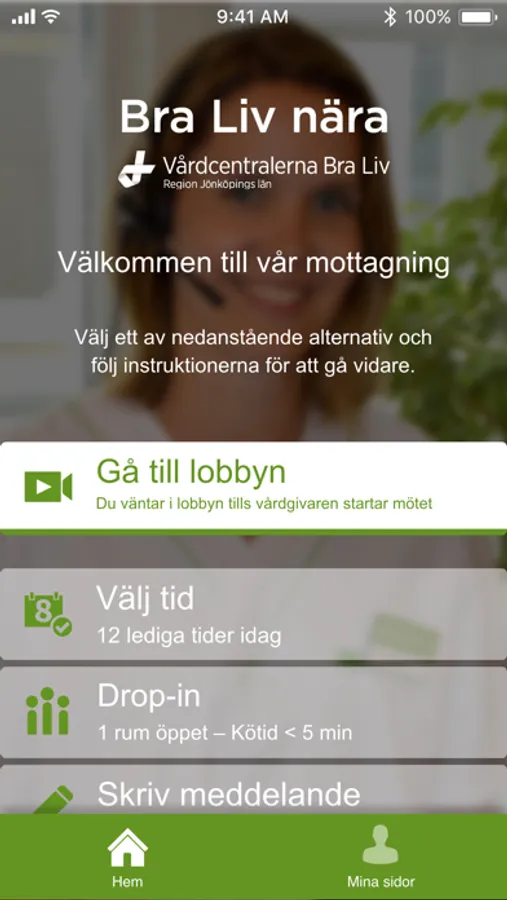 Du kan när som helst logga in på appen för att se nästa lediga tid, och boka den tid som passar dig. Logga in med mobilt bank-ID och invänta ditt videobesök, hemma, på jobbet eller semestern.