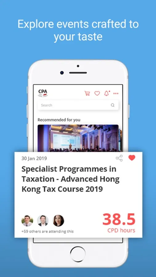 - Search an event by name, category, speaker, delivery language, eligibility, CPD hours, etc.