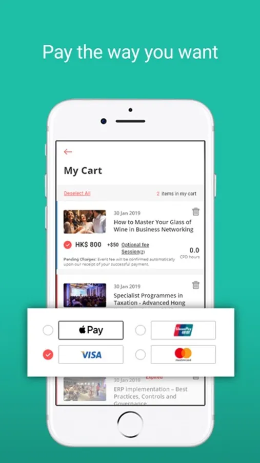 - Pay with Apple Pay, Google Pay and Union Pay as well as credit cards