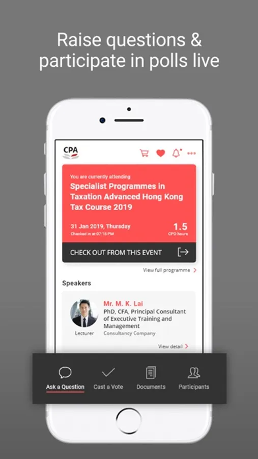 New version released - on top of in-app event enrolment, payment and record keeping, the HKICPA Events app now enables members and students to: