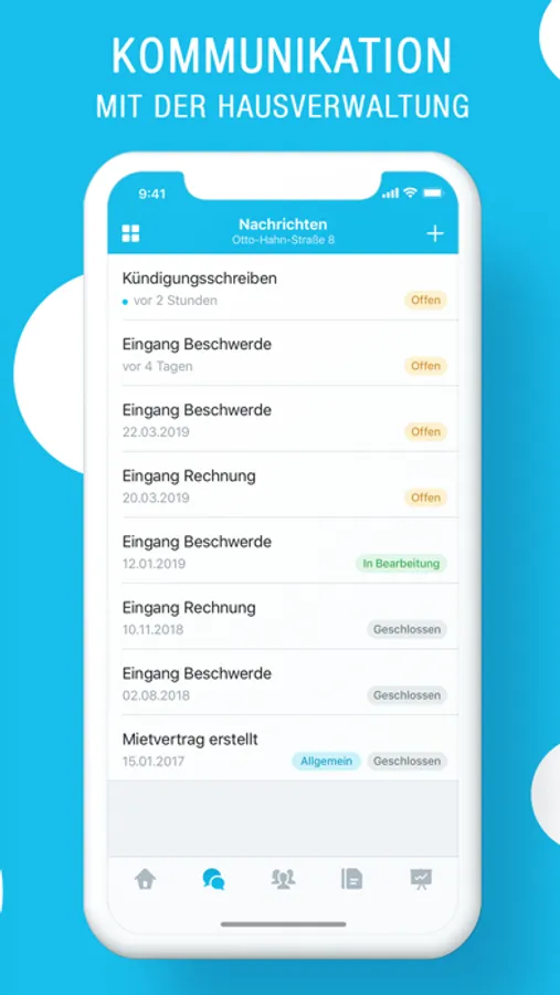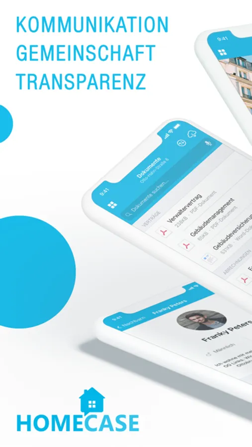 HOMECASE ist eine Kommunikationsplattform rund um jedes Haus. Sie vereinfacht die Arbeit zwischen allen, die um das Haus etwas zu tun haben, egal ob Hausverwalter, Mieter, Eigentümer, Hausmeister oder Dienstleister.
