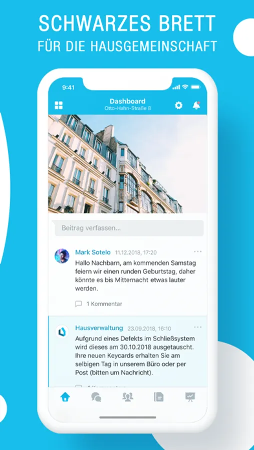 Auch Mieter oder Eigentümer untereinander haben hier die Möglichkeit sich auszutauschen und so die Hausgemeinschaft zu stärken.