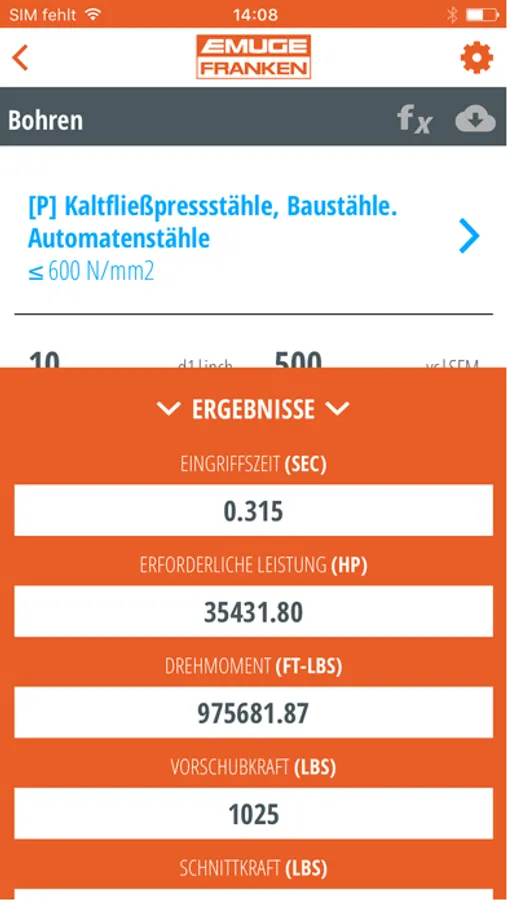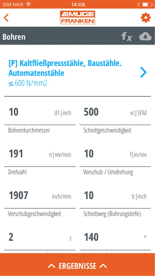 This App calculates cutting data for Twist Drills, Taps, Cold Forming Taps, Thread Milling Cutters and Milling Cutters.