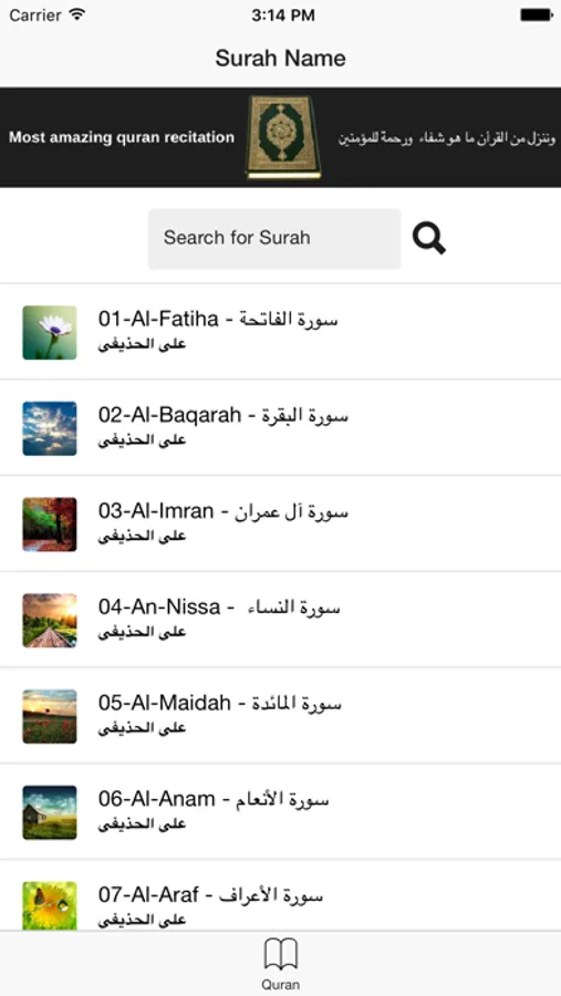 نقدم لكم برنامج المكتبة الصوتية للقرآن الكريم بصوت الشيخ المقرئ علي الحذيفي برواية قالون عن نافع برنامج مميز ذو جودة عالية.