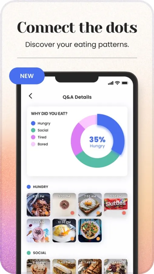 - See a summary of your answers to the mindful questions under meals, like “Why you ate?”.