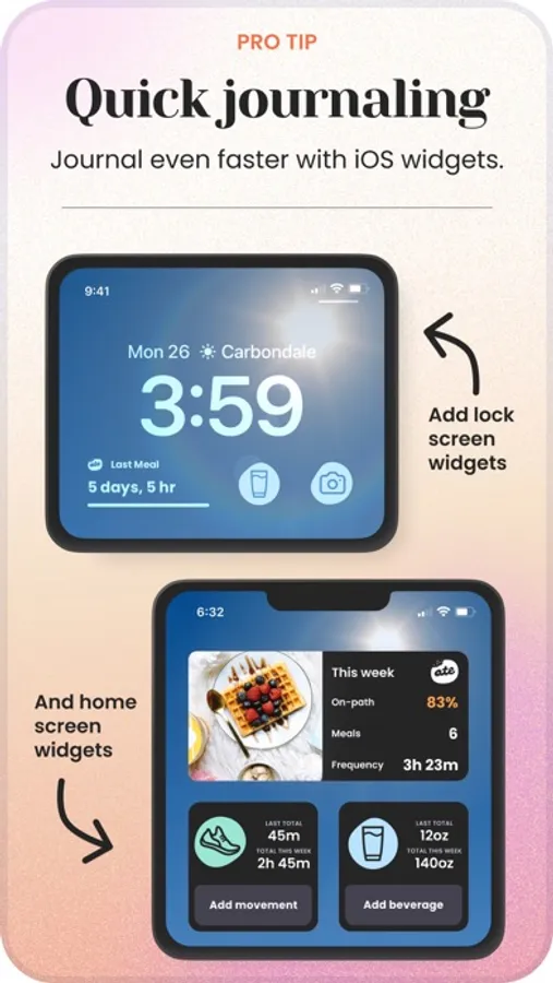 - See your last meal on the Lock or Home screen, with the Ate widget.