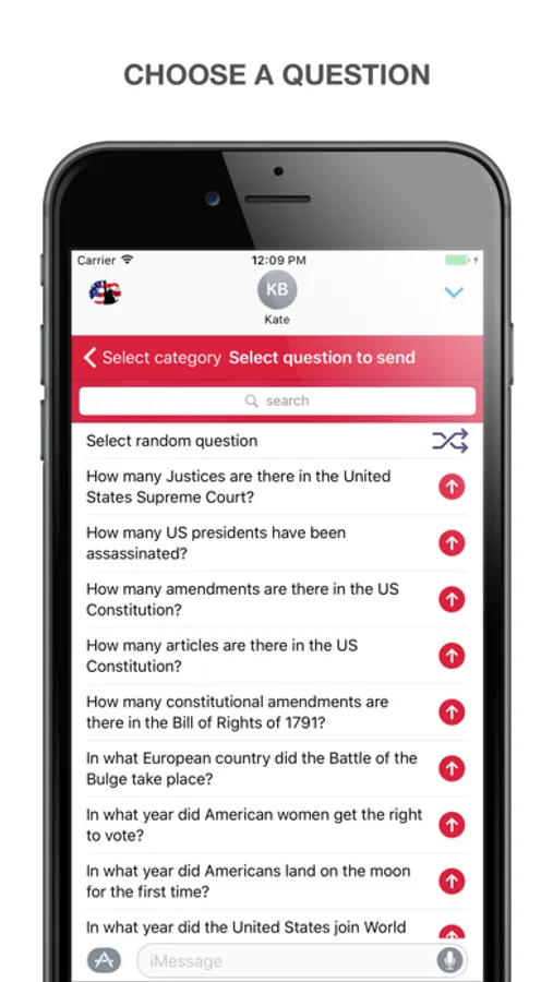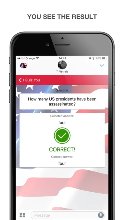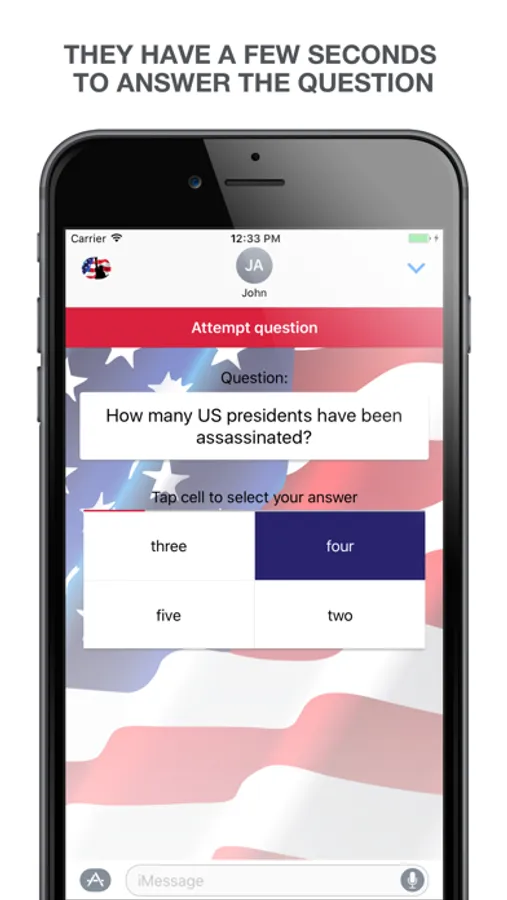 Quiz your friends on the history of the United States of America by sending them questions via Messages. Just open the app, select a question and send it to your friend who will have 10 seconds to answer it.
