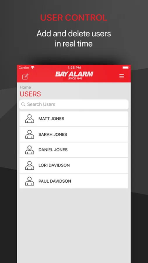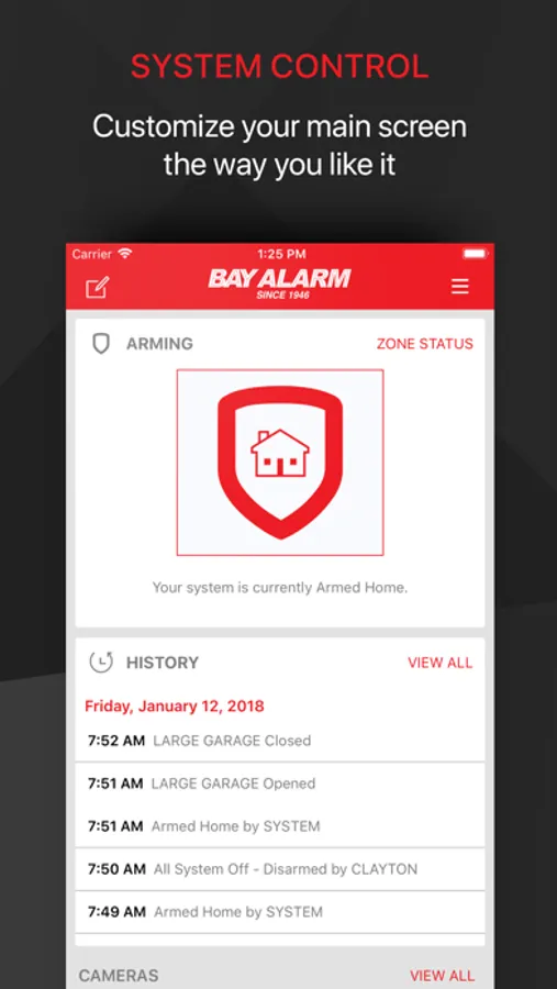 The Bay Alarm™ App allows you to control your security system on-the-go. You can connect to your home or small business system to arm or disarm, manage user codes, view sensor activity, and receive push notifications of system events.