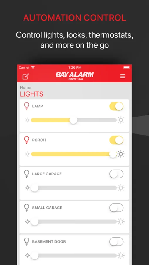 The Bay Alarm App offers the following features: