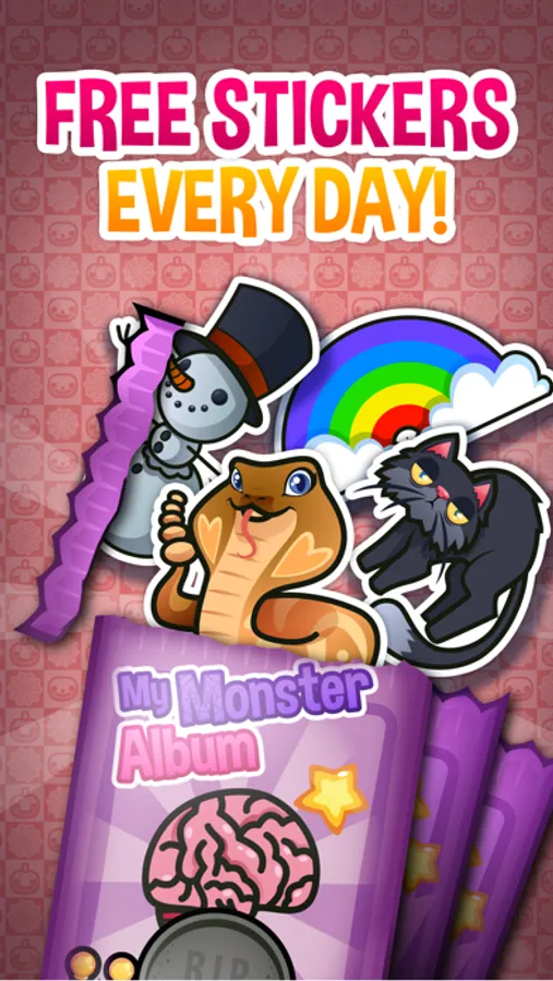 Have some killer fun collecting all the CUTE and FREAKY monsters in your Album! Unveil all the different stickers and discover all the dark CREATURES! Release the cute witch, the scary vampires, skeletons, mummies! Enjoy the stickers of the bad werewolf, the werecat and even the AMAZING unicorn!