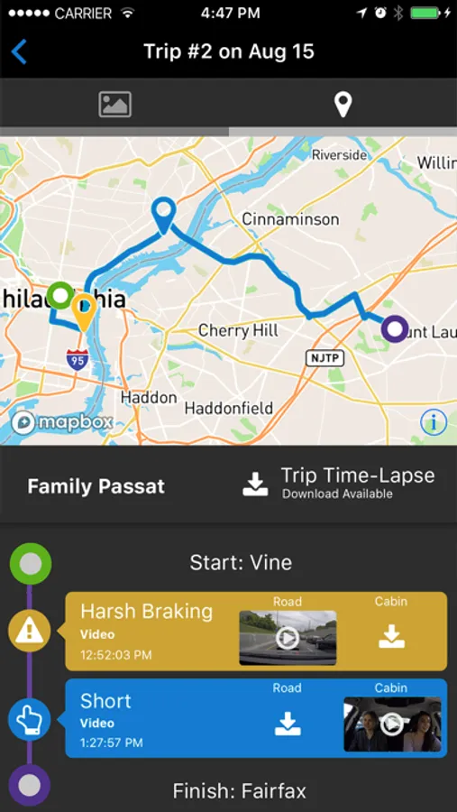 * 24-7 Live Video - LTE wireless connection delivers dual-facing (outward and in-cabin) HD video to your phone.