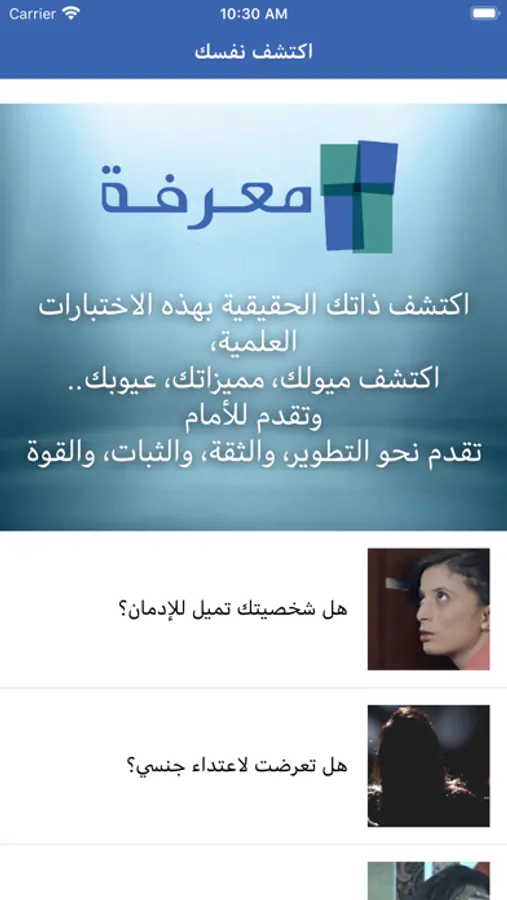تطبيق اكتشف نفسك هو تطبيق ليساعدك على اكتشاف نفسك ومعرفة كيانك الداخلي بصورة أوضح واقرب، لذا استندنا في عمل التطبيق على الاختبارات العلمية المتخصصة حتى تكون النتائج عاكسة لحقيقتك.