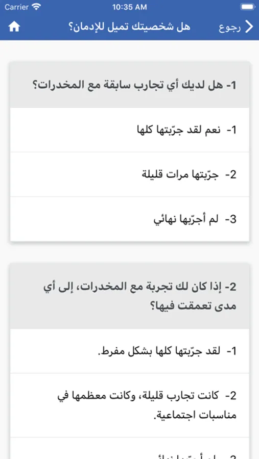 يحتوي التطبيق على الاختبارات التالية، وسنقوم بتنزيل المزيد بعد ذلك..