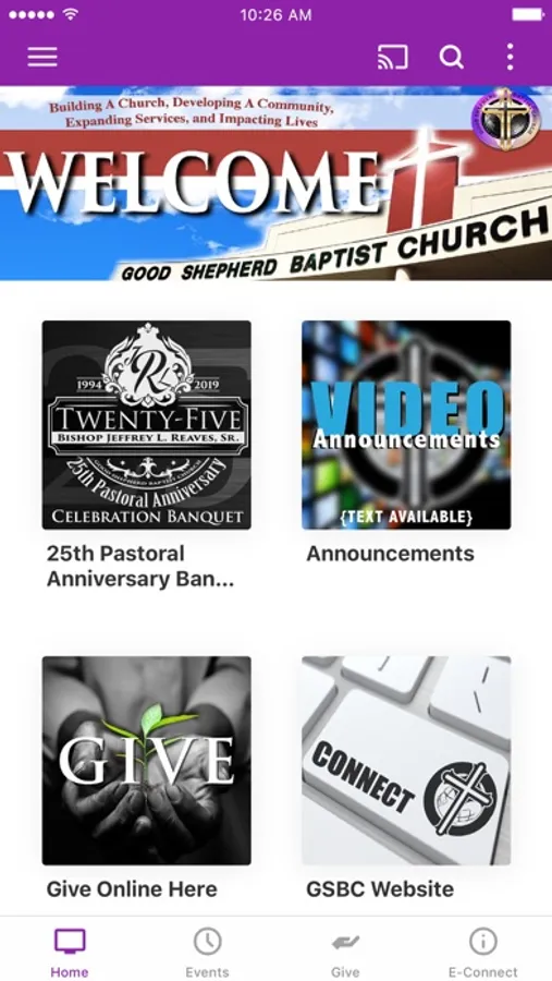 The Good Shepherd Baptist Church App was created with the Subsplash App Platform.