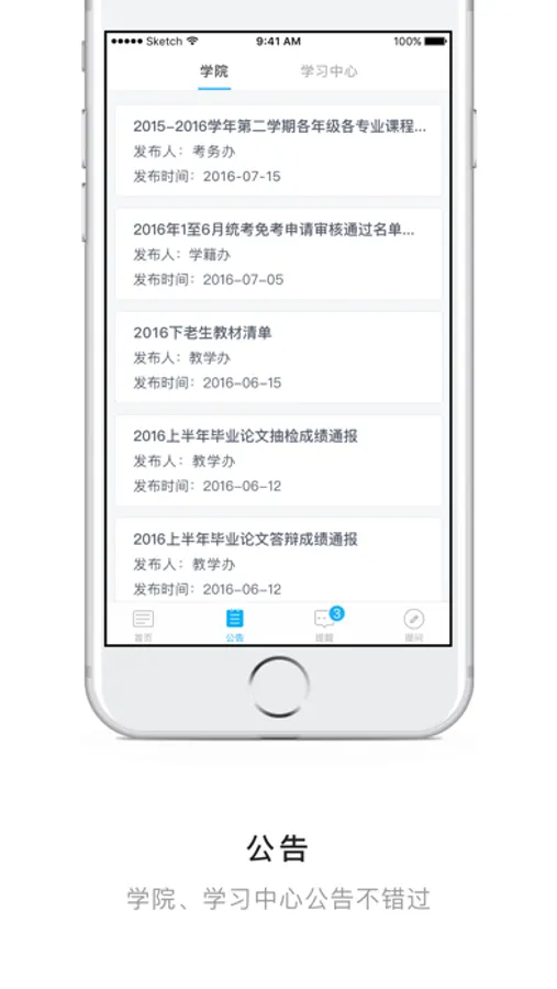 2. 贴心的信息共享:实时同步接收学院及学习中心的公告及提醒,重要通知即时送达;