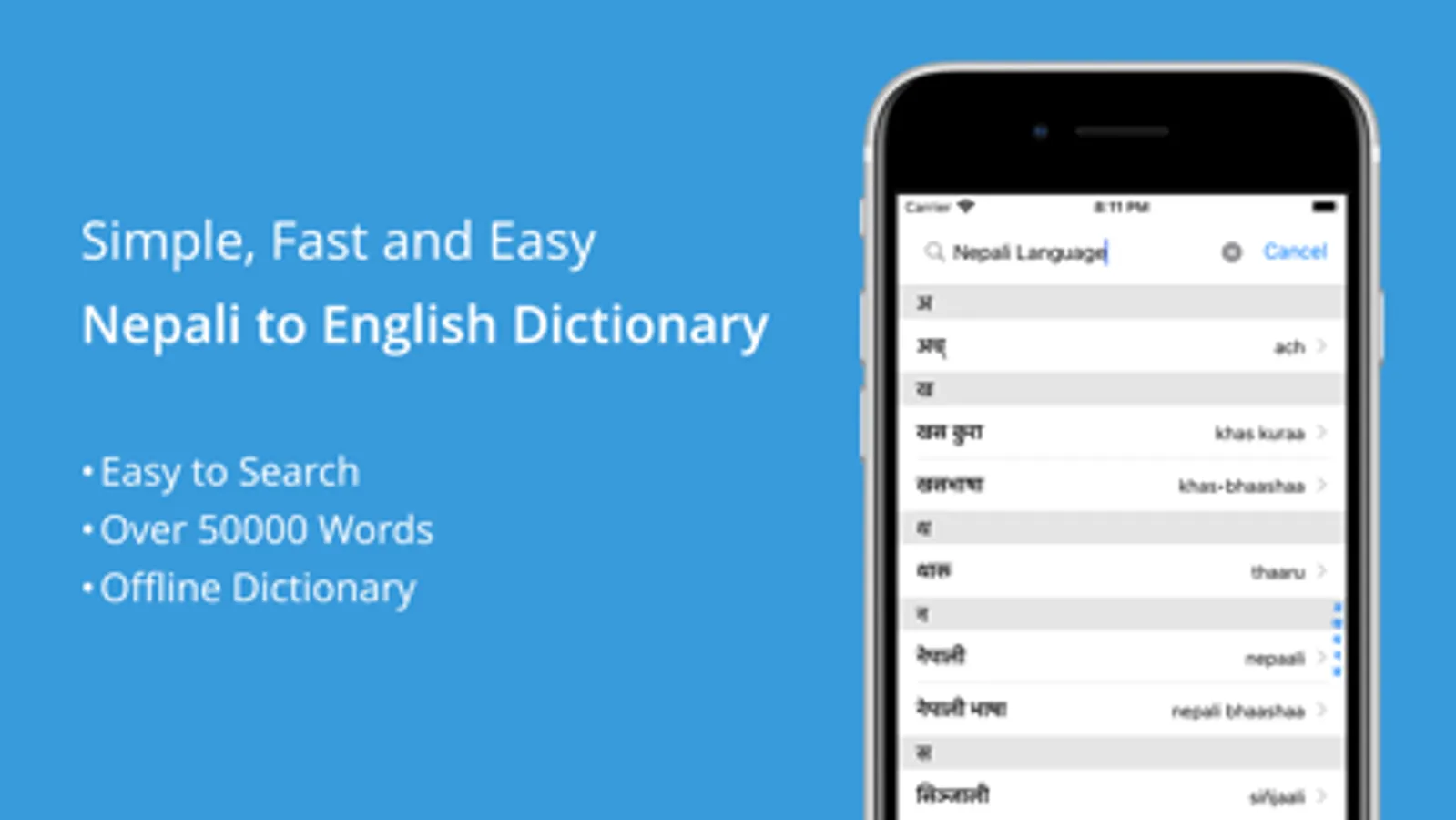 This amazing app provides with you, Nepali lovers, a super easy-to-use NEPALI-to-ENGLISH Dictionary, with the following great features:
