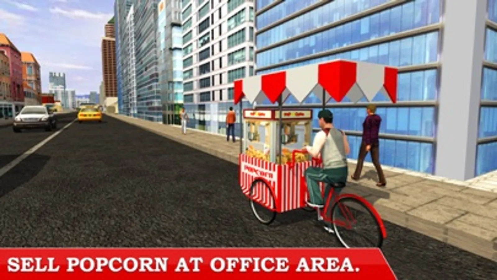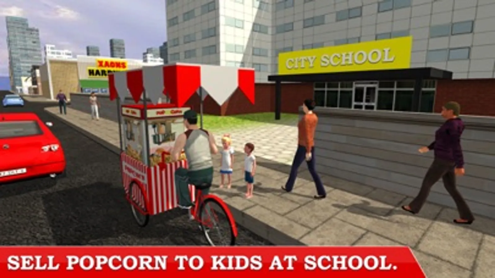 Hey!.. Look! Popcorn hawker taking turn from the corner of the street!... Ride popcorn handcart bicycle around in streets and sell yummy pop corns in different flavors like caramel & salty. So play popcorn pushcart music on to alert little kids and people in surrounding areas that popcorn handcart is coming. In this way, enjoy fresh entry in popcorn making games by installing popcorn hawker simulator in your mobile device. In this popcorn handcart simulator, enjoy riding popcorn trolley and be a popcorn maker. In all, take packets from supermarket store supplies and be popcorn handcart boy.