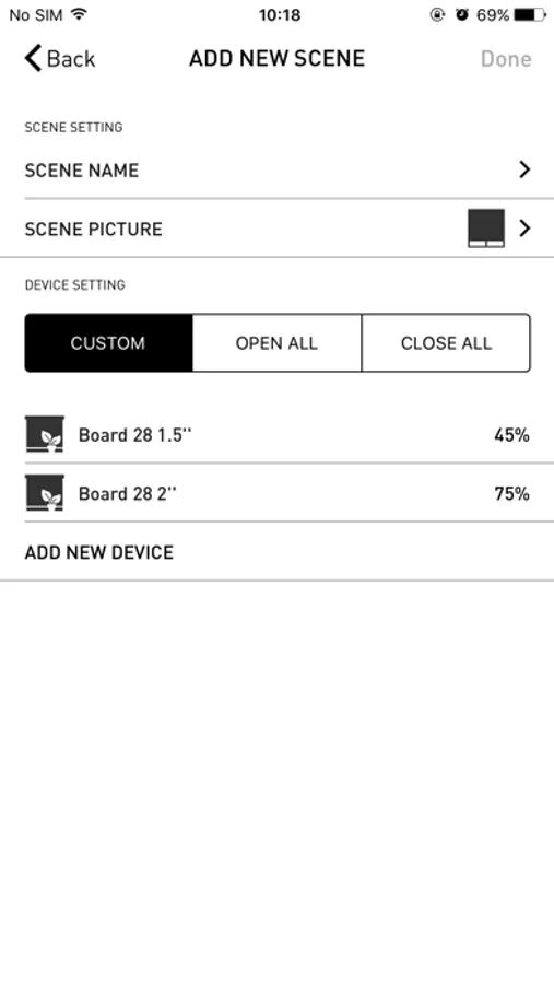 * Set up to 30 shade configurations including grouping by room and at various predetermined heights