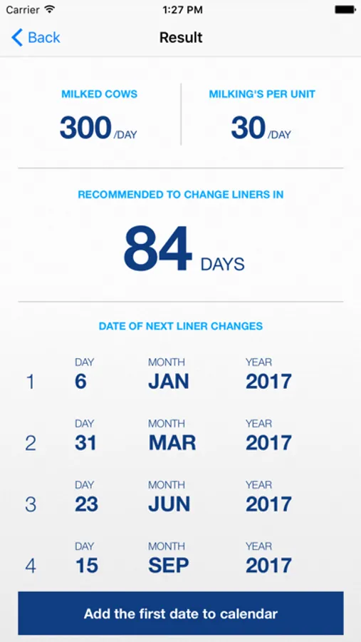 - See how often you need to change your liners (based on a recommendation of a liner life time of 2500 milkings or 180 days – whichever comes first)