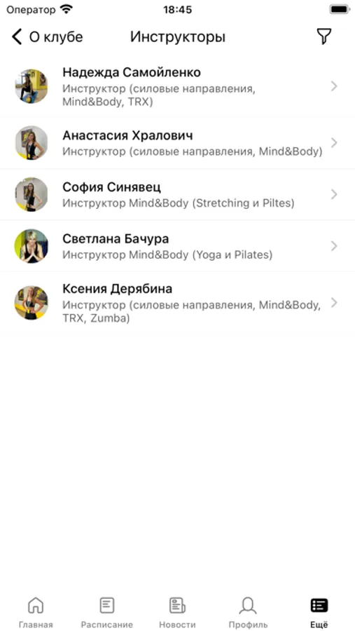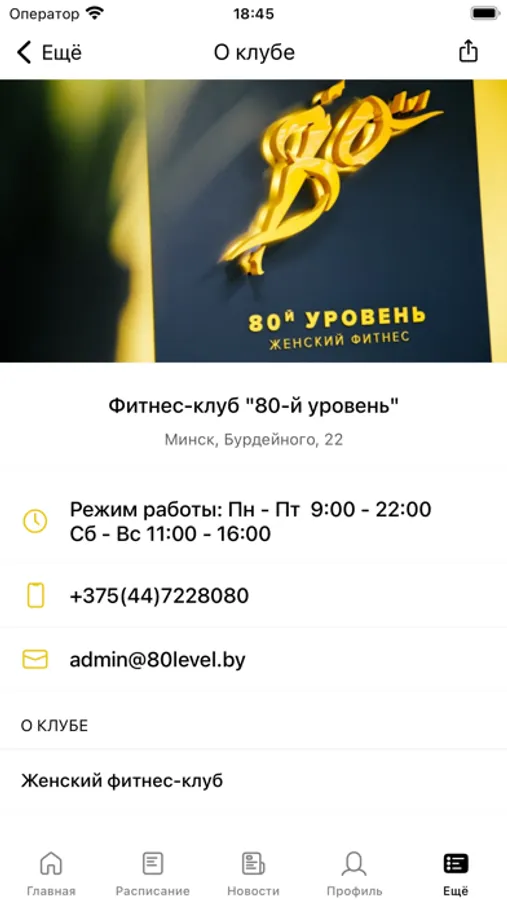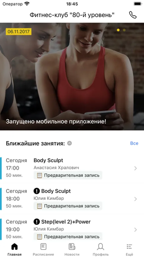 С помощью приложения вы можете следить за новостями, расписанием клуба, оперативно получать информацию об изменениях в расписании и специальных предложениях и многое другое.
