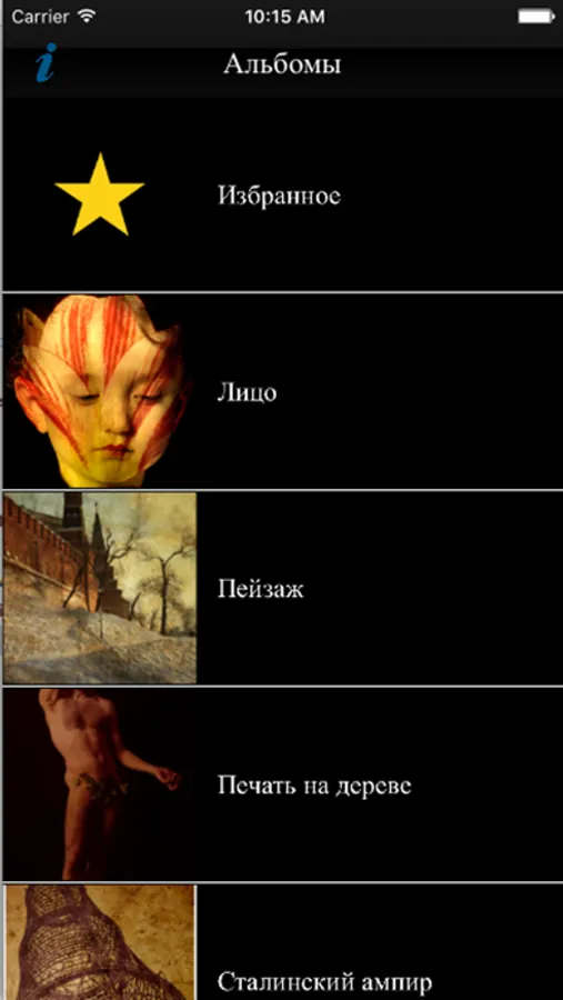 The application is dedicated to the work of photographer Vladimir Сlavijo-Telepnev. The application presents photos, divided into albums with different themes. Users are given the opportunity to view the contents of each album, view each individual photo in detail, and select favorite photos in the "Favorites" album.