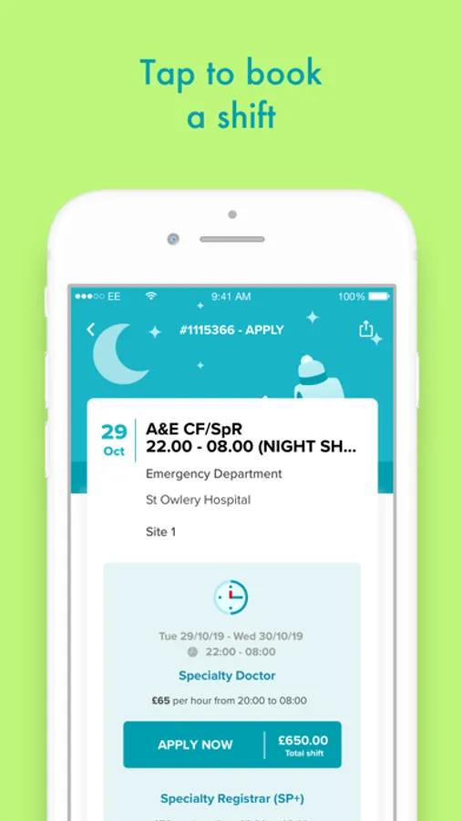 3) Apply to thousands of shifts with just a tap! Access job details such as shift times, pay rates, guidelines and more.