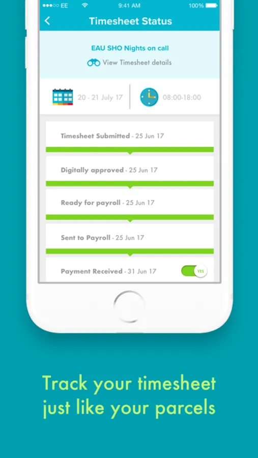 4) Submit digital timesheets and track their progress, just like your parcels.