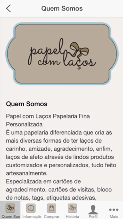 É uma papelaria diferenciada que cria as mais diversas formas de ter laços de carinho, amizade, agradecimento, enfim, laços de afeto através de lindos produtos customizados e personalizados, tudo feito artesanalmente.