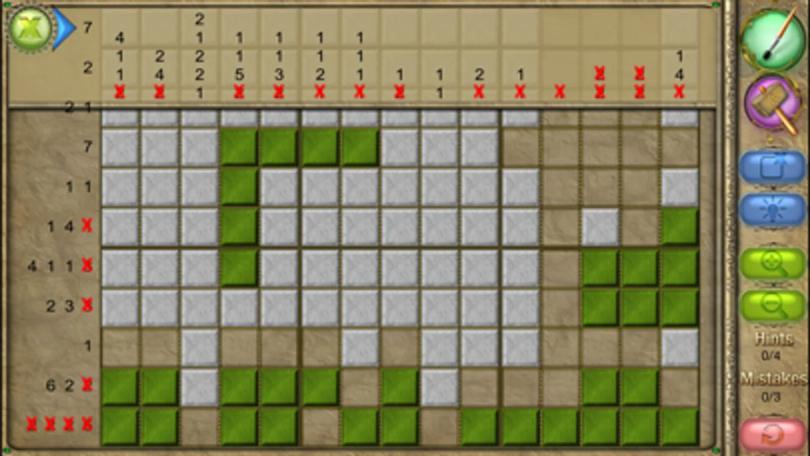 An old Japanese logic puzzle takes on a new look with FlipPix Jigsaw! Touch tiles to paint them or break them to form colorful images. The goal is to use logic to determine which tiles should be filled to reveal a hidden picture.