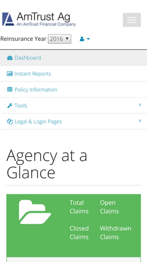 Welcome to the AmTrust Ag Agent app! This app provides a way for you to easily view your policies, submit Notices of Loss, view claim status and retrieve policy documents. The Agent app also provides additional services that allow you to quickly access and view market information for select crop/commodities, current news in the crop industry and weather stats/forecasts by zip code.