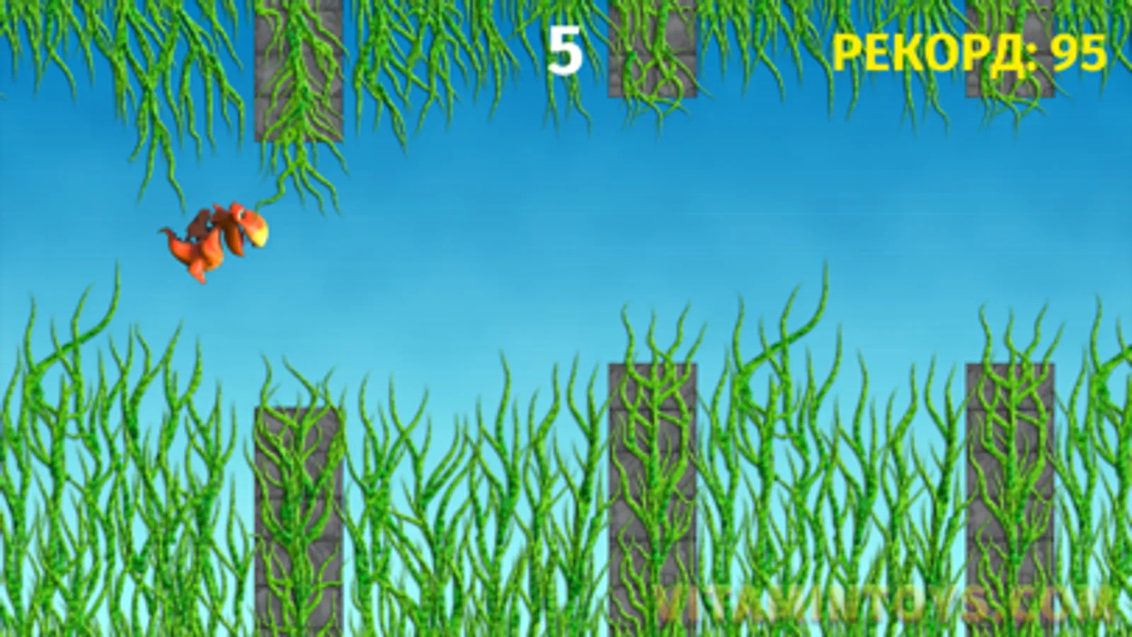 Лети драконом по имени Фендер мимо скал, заросших лианами. Чем больше препятствий ты пройдешь - тем больше очков получишь.