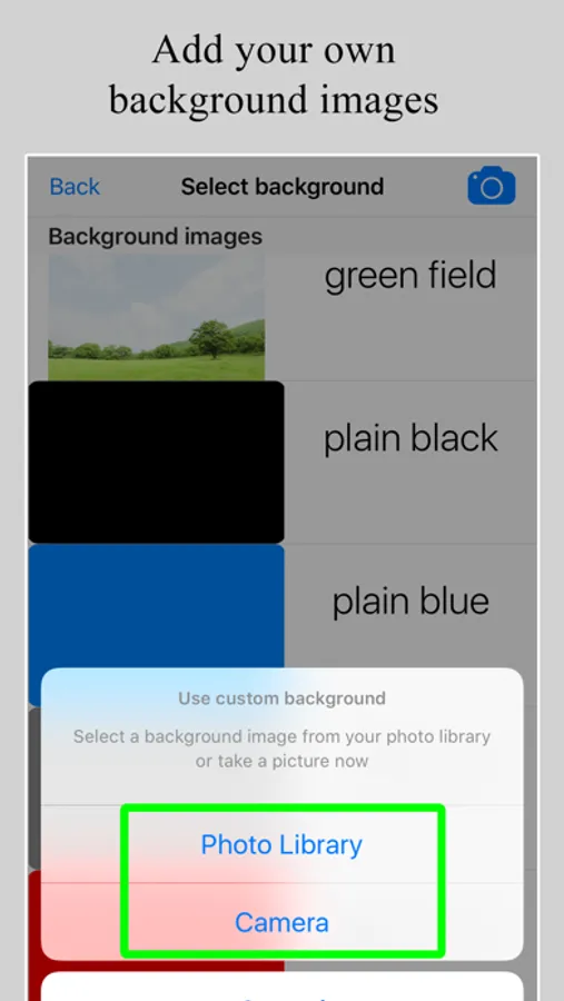 And to top it off, you can also add your own custom background images from the web, the photo library or straight from the camera.