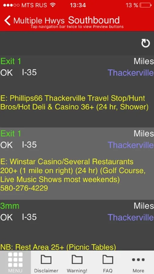 Where viewing maps remember that only 25 locations load up at a time. To load up more locations you will need to tap the "Show More..." bar near the bottom of the screen.