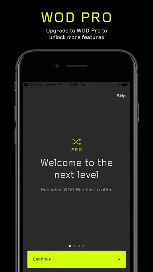 Wod is free to download and use. To further your training plan and variety, Wod Pro unlocks all workouts and provides the ability to save your favorite workouts and restart workouts from anywhere in the app.