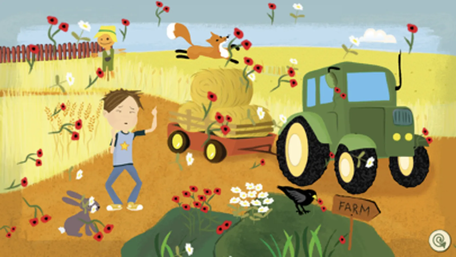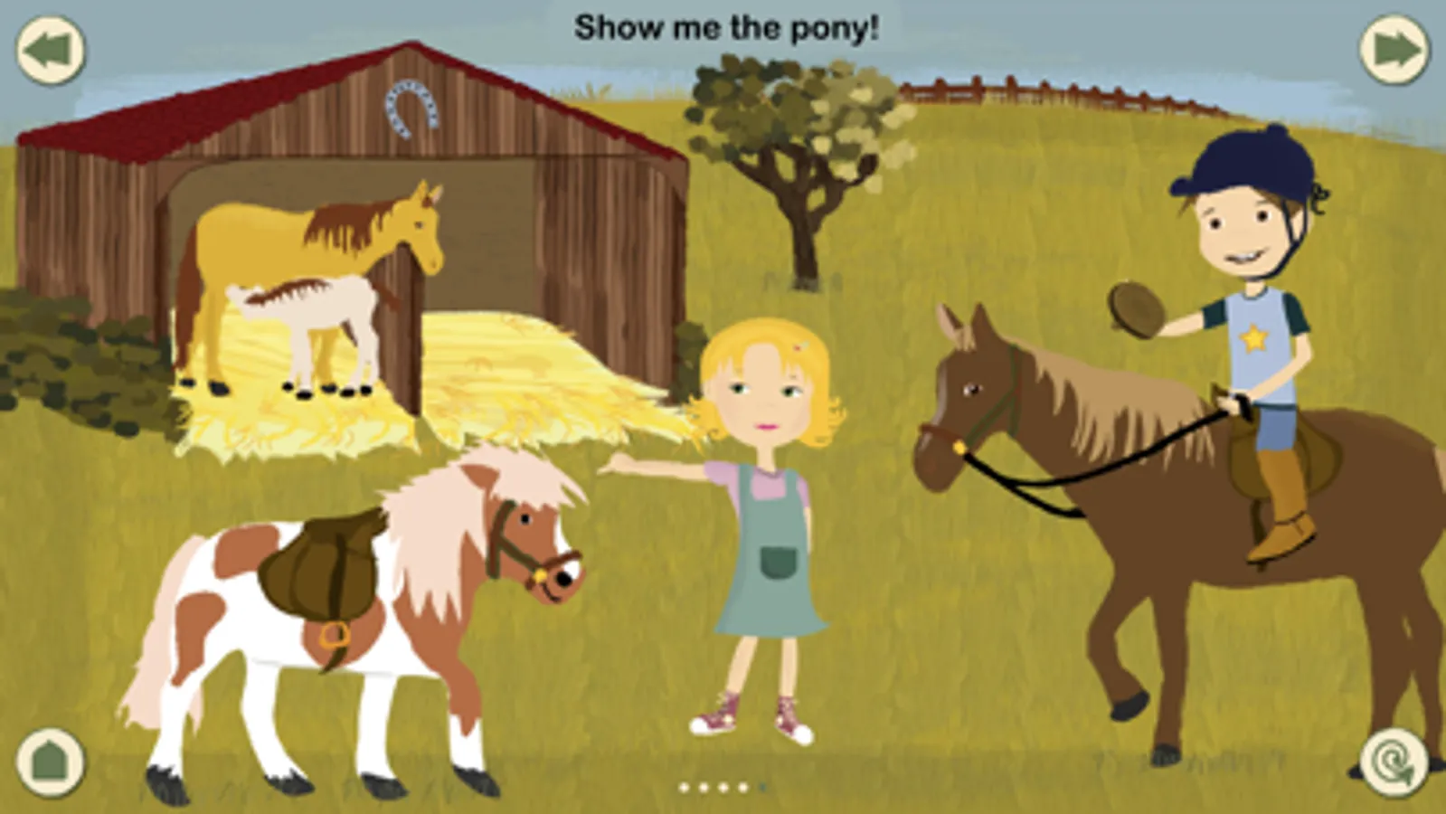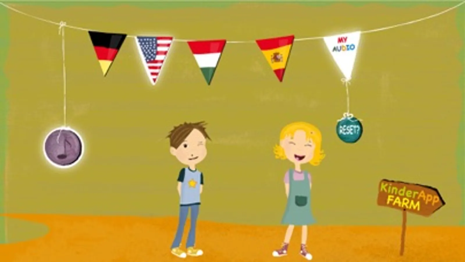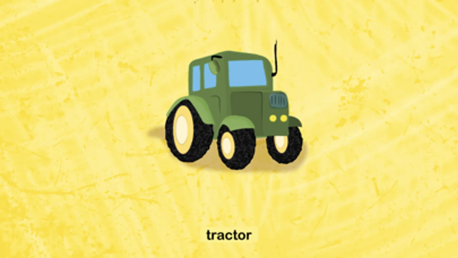 With KinderApp Farm - the best app to learn "first words" in a language with - we stand on a sunny wheat field, visit a stable with many animals, explore the farmyard, discover the vegetable garden, and enjoy being with the horses in the corral. With the app, children learn the names and pronunciations of more than 60 important objects on a beautiful farm.