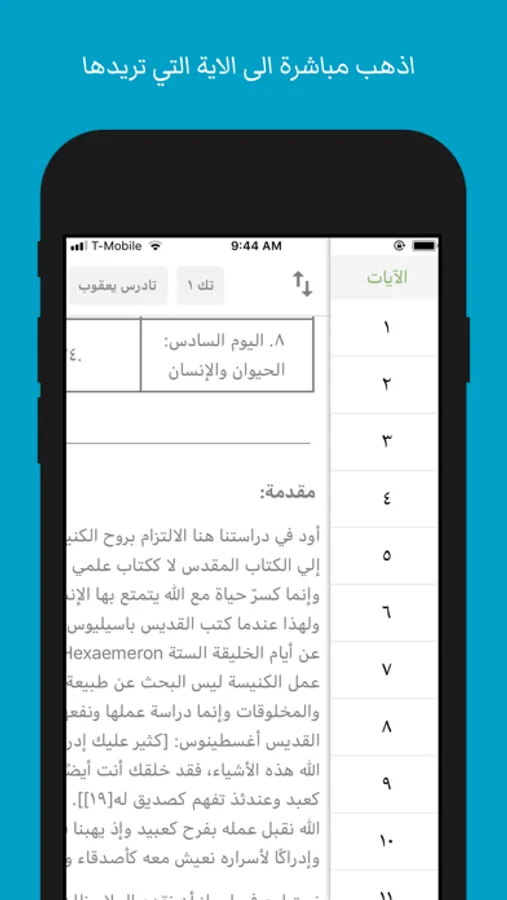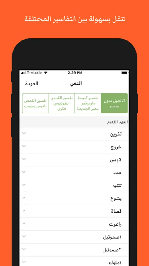 - يمكنك التنقل بسهولة بين اسفار الكتاب المقدس و اصحاحاته