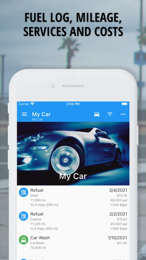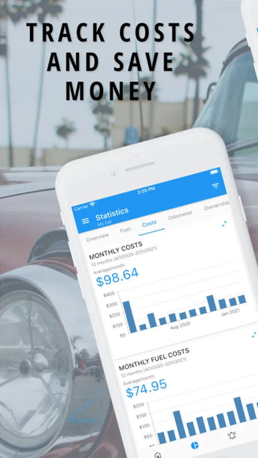 Use the app for cars, trucks, motorcycles or buses. The app supports bi-fuel vehicles too such as gasoline/CNG as well as electric vehicles.