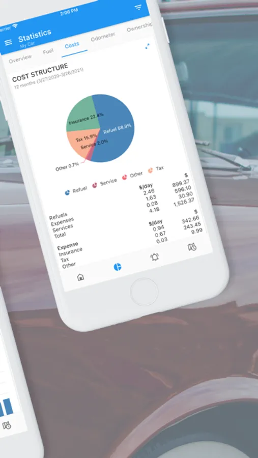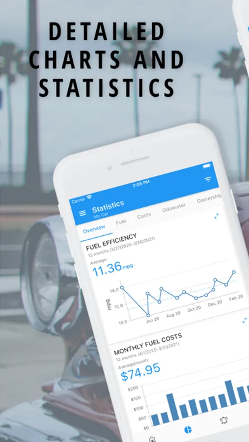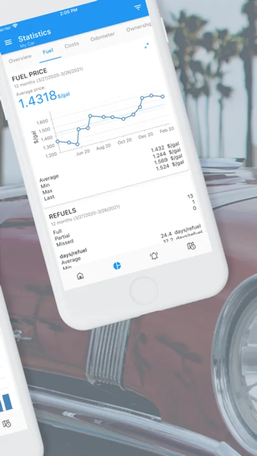 View and analyze interesting statistics and charts related to your vehicle. There are statistics and charts for every detail of your car.