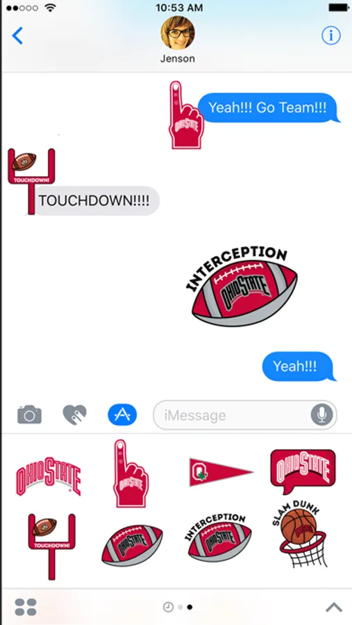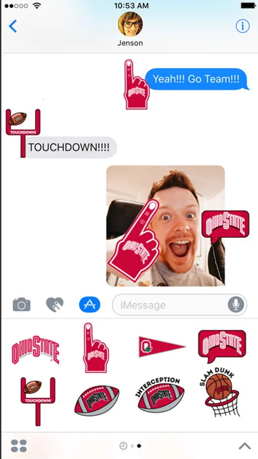 New for Ohio State football, Ohio State basketball and all Ohio State Buckeye sports including baseball, softball, and gymnastics. Ohio State iMessaging stickers are officially developed and licensed by 2Thumbz. Like emojis, the iMessage stickers can be added to text messages to show your school spirit for the Buckeyes.