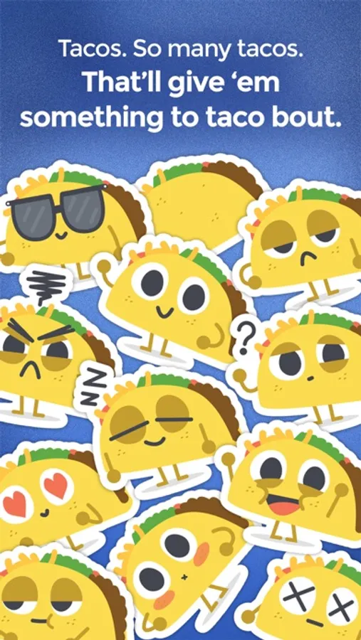 Let's Taco Bout It is a collection of delightfully expressive taco stickers for iMessage. You'll find over a dozen different stickers for any situation. With these adorable little guys, you and your friends will have plenty to taco bout!