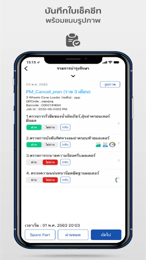 When carrying out PM tasks, you can easily request spare parts, approve the request, and check the remaining stock via the app.