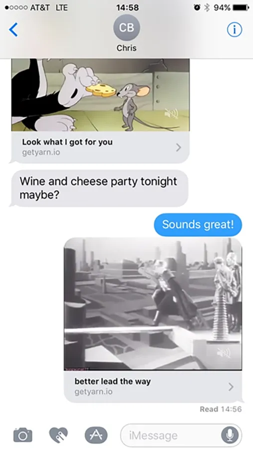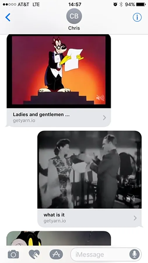 YARN messages helps you find and share video clips inside your Messages and texts!