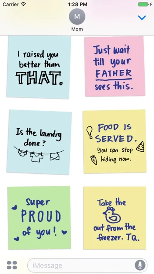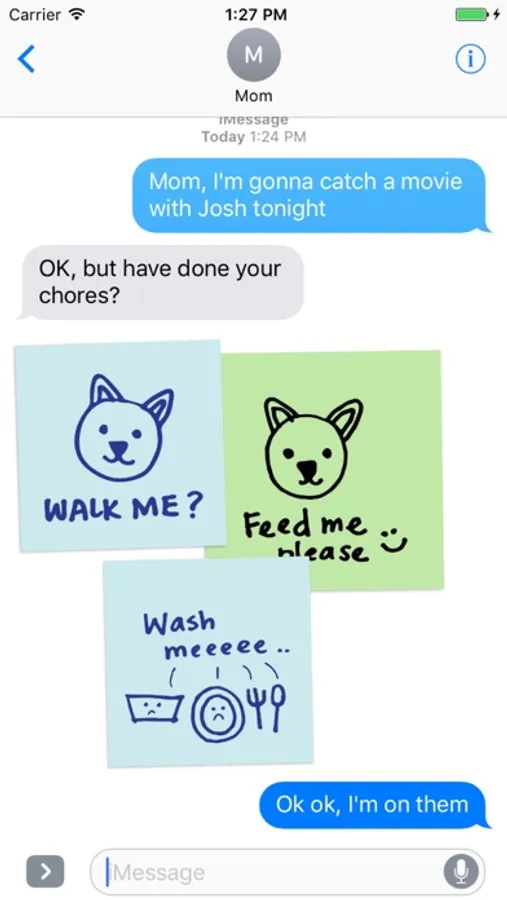 The pack contains 33 stickers that will suit a variety of chat situations with your kids. This includes: