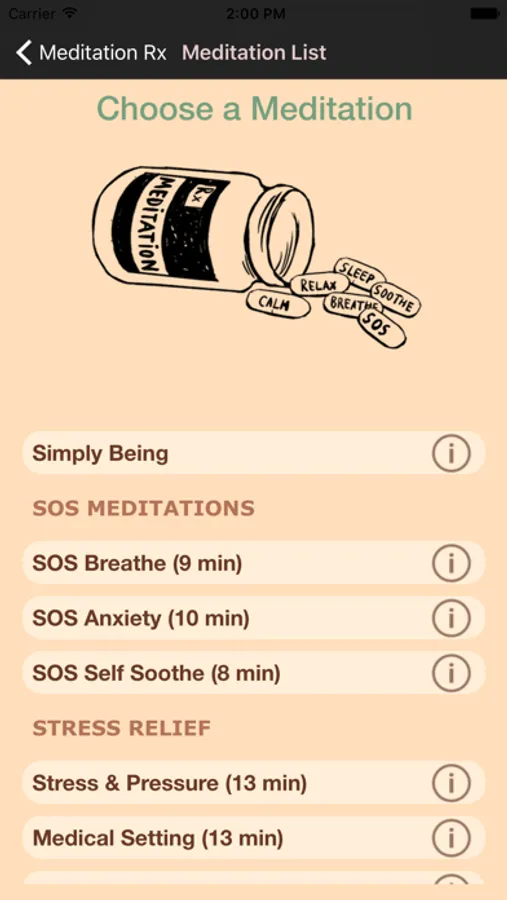 The Meditation Rx app contains: