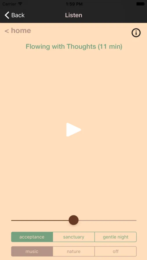 You can listen to the voice guidance with or without music or nature sounds in the background. You also have the option of listening to music and nature sounds alone.