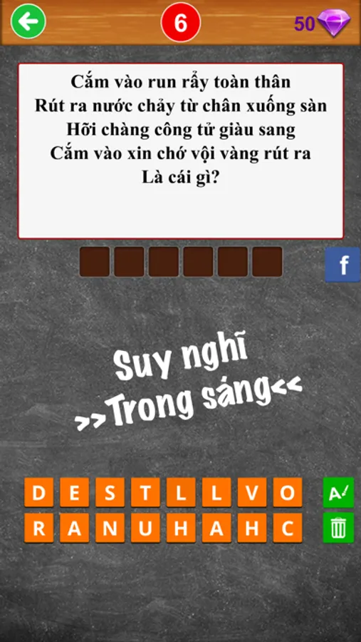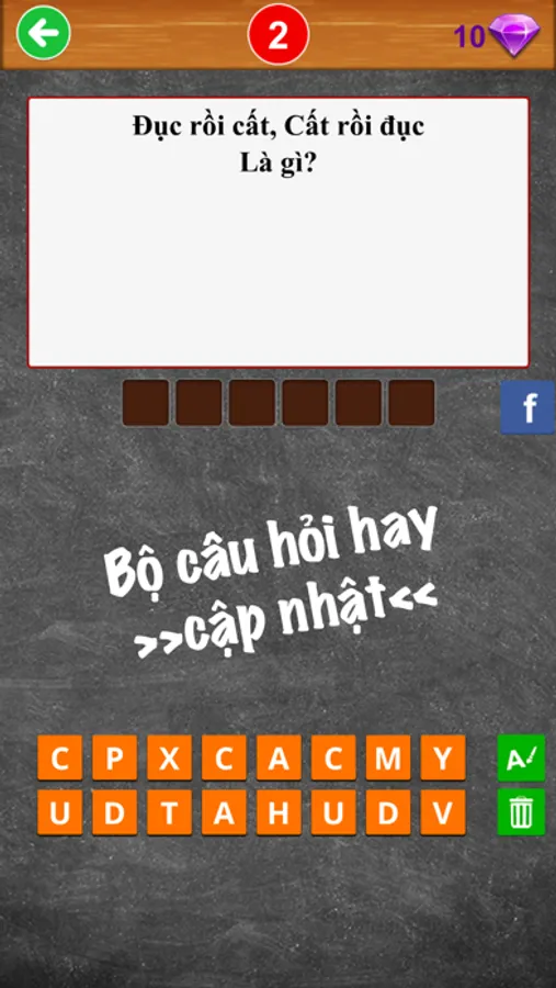 Đố vui dân gian - Đố vui hại não mới là một trò chơi Việt thú vị và đầy thử thách. Bằng cách lồng ghép những câu hỏi dân gian vừa đòi hỏi sự thông minh, cùng những câu hỏi đòi hỏi sự dí dỏm, trong sáng, game đó vui dân gian hại não sẽ mang lại cho các bạn những giây phút vừa thử thách vừa giải trí. Chơi game đố vui dân gian hại não sẽ còn vui hơn khi chơi cùng bạn bè. Hãy giải tất cả các câu đố với điểm thưởng cao nhất và thách thức bạn bè nhé.