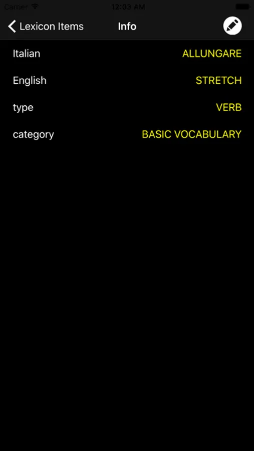 The game comes with a list of over 800 commonly used Italian words, and the ability to add new words, as well as group words by category.