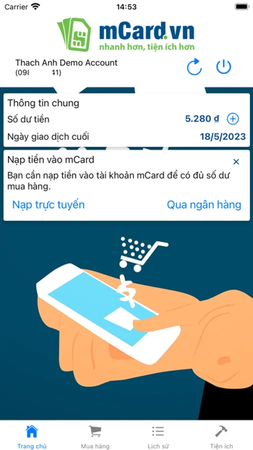 Phần mềm này là phần mềm bán hàng đầu cuối của mCard.vn cài trên smartphone, cho phép khách hàng đăng nhập mua hàng hoặc sử dụng dịch vụ trên trang https://mcard.vn bằng điện thoại thông minh kết nối Internet. Phần mềm có chức năng mua hàng, tra cứu lịch sử của dịch vụ, nạp tiền trực tuyến qua thẻ ATM, quét QR Code (do nhà cung cấp OnePay) hoặc nạp với thẻ quốc tế Visa/Master (có điều kiện cho tài khoản mới đăng ký - xin liên hệ Admin).